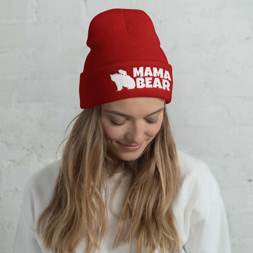 Bold MAMA BEAR Embroidery Cuffed Beanie