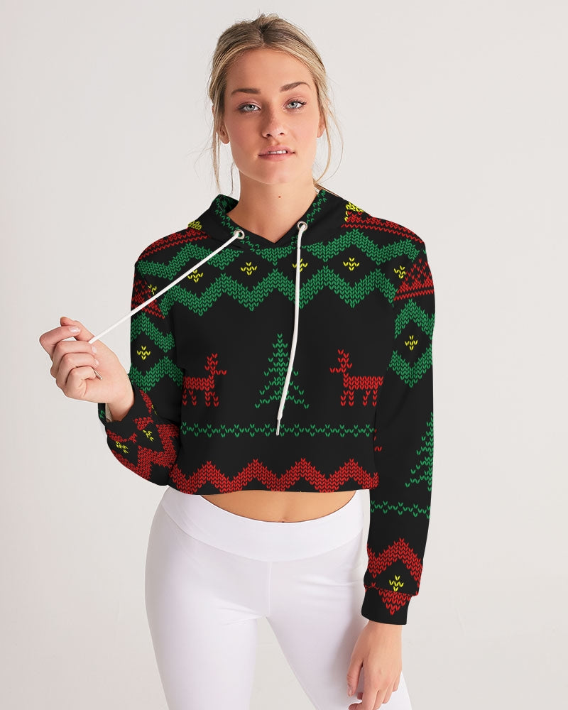 Christmas Merry Sweatshirt (Sweater) Black Women's Cropped Hoodie