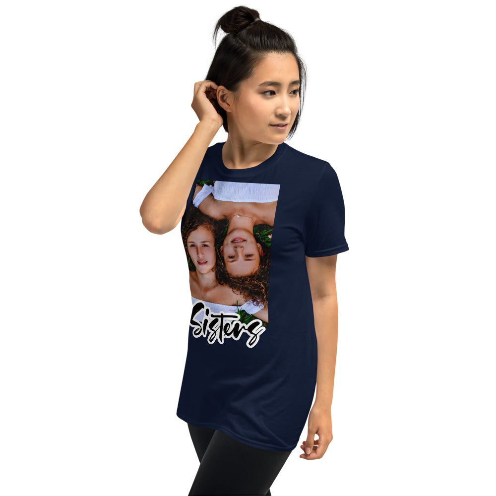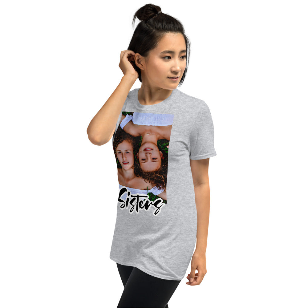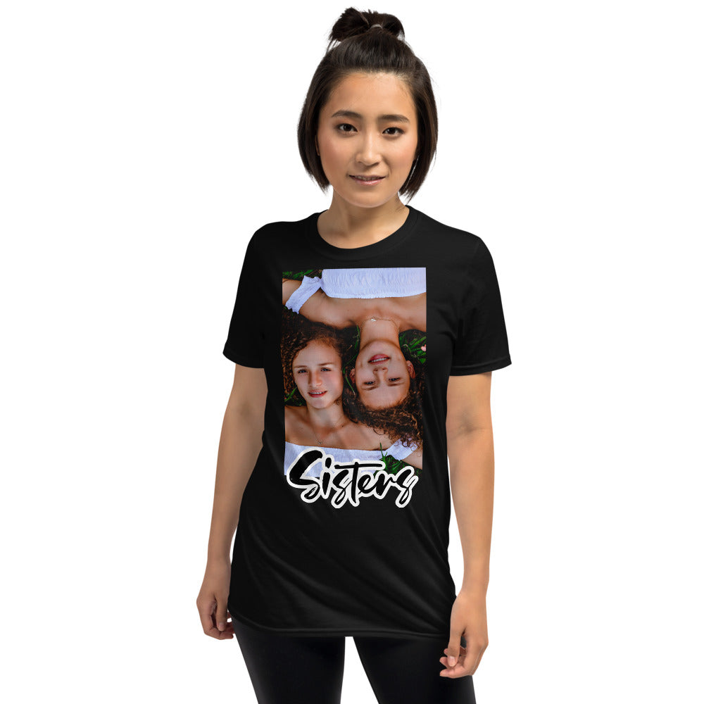 Sisters Custom Photo + Text Personalized Unisex Softstyle Short-Sleeve T-Shirt